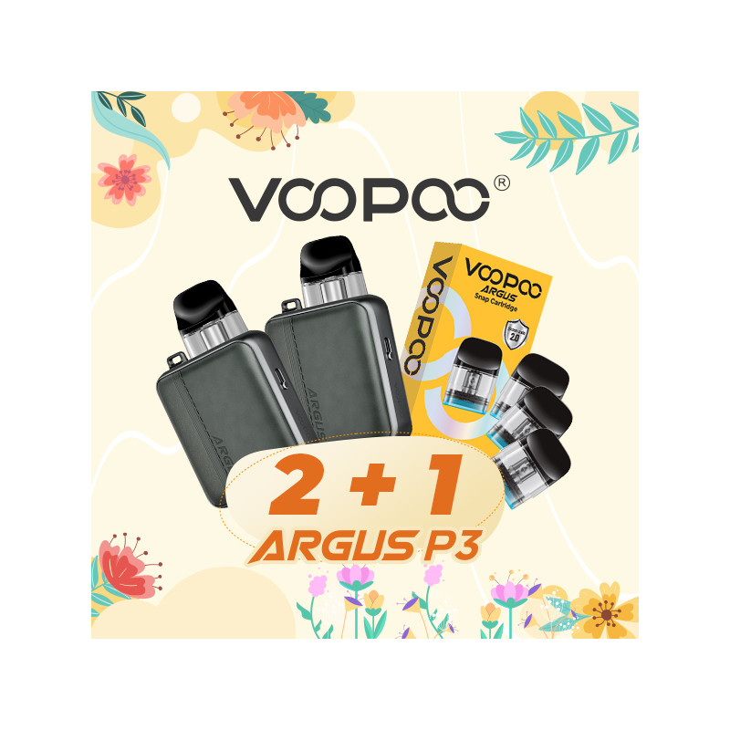 Pour l'achat de 2 Kits Argus P3 de Voopoo (couleur Grey Leather), recevez gratuitement un Pack de 3 Cartouches 2mL Argus Snap d'une valeur de 0.4ohm.