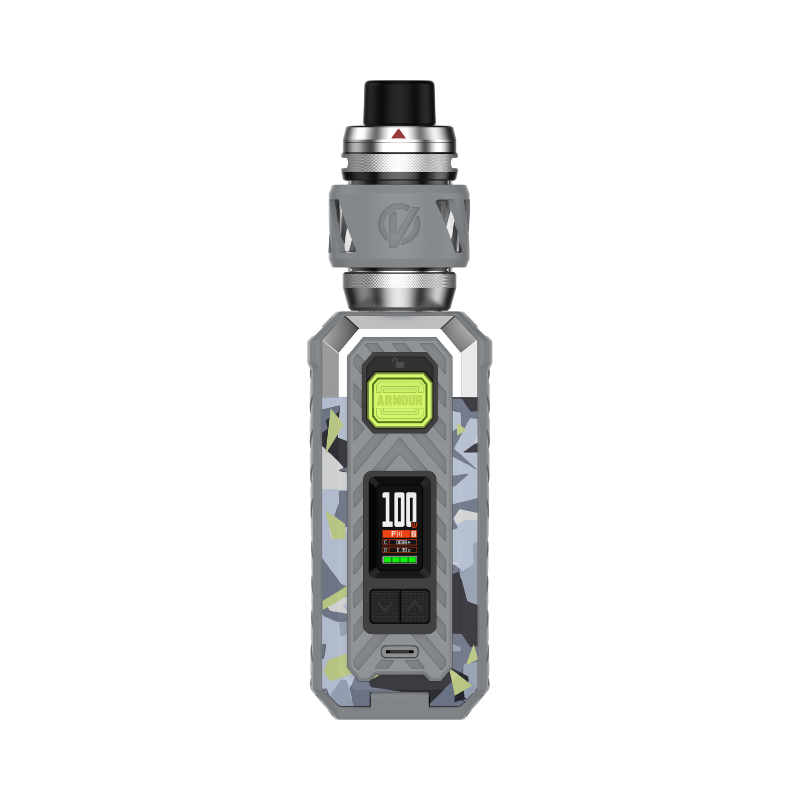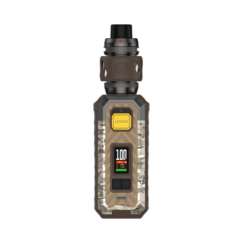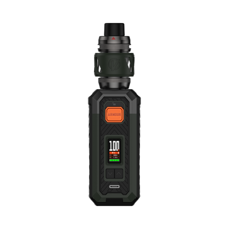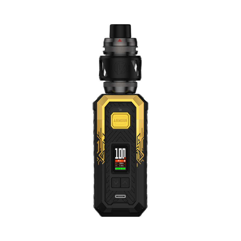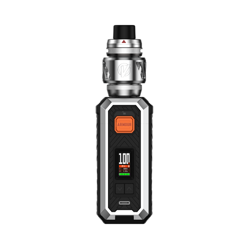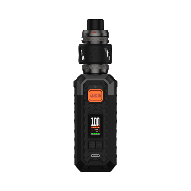 The Armour S Kit (little sister of the Armour Max Kit) from Vaporesso works with a 21700 or 18650 Accu (not supplied) and develops up to 100W of power. The Kit is sold with Vaporesso's 6mL Ato iTank T and is compatible with the brand's GTi coils.