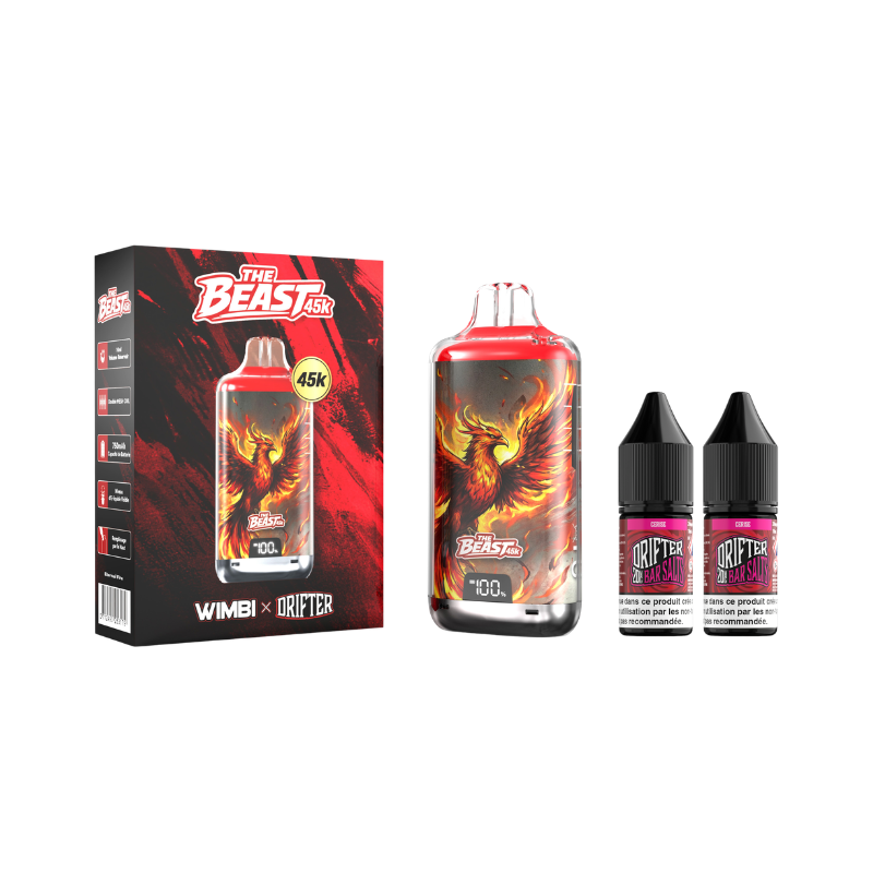 Buy Kit The Beast 45K Eternal Fire 750mah 10ml (2x10ml) Wimbi X Drifter 20mg at wholesale price