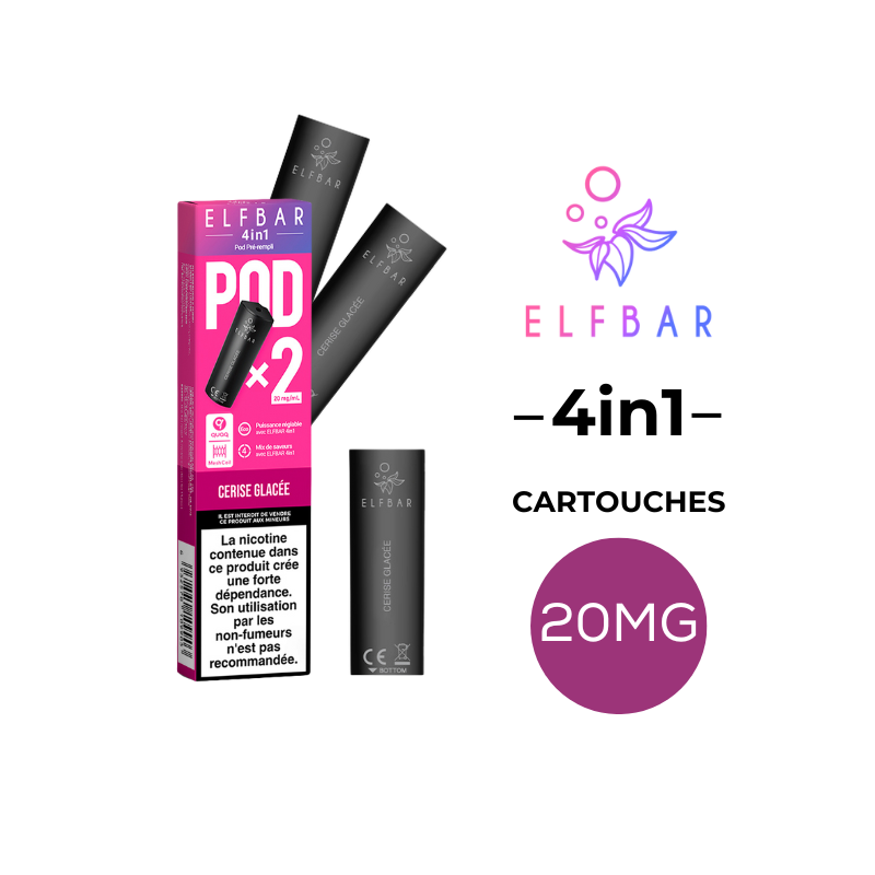 Pack of 2 pre-filled pods containing 2mL of Nic Salt 20mg liquid, compatible with Elfbar's 4in1 kit (not included).