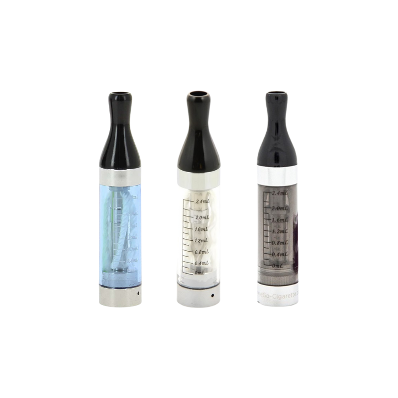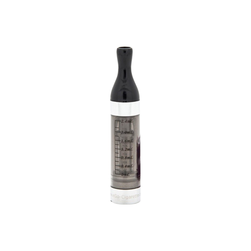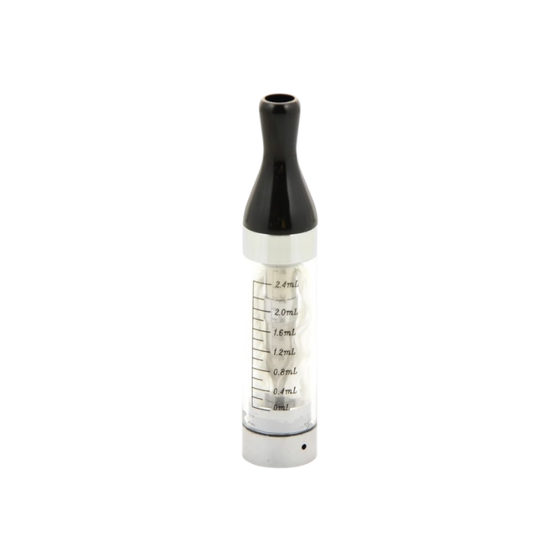 The Clearomizer consists of a body that can hold up to 2.4mL of liquid, a wick, and a Drip Tip. The Drip Tip and wick are replaceable and can be purchased separately.