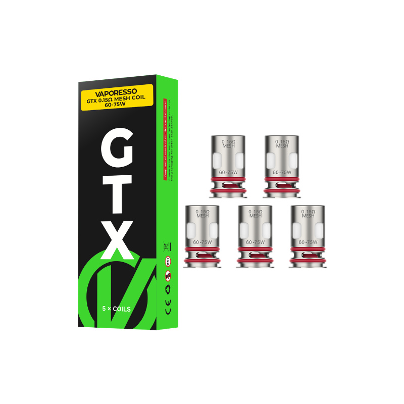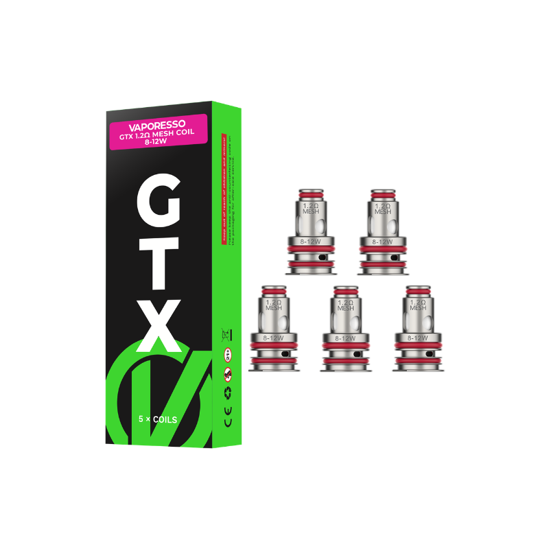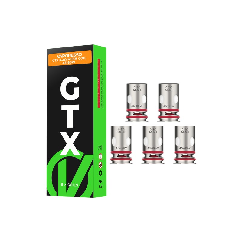 Pack of 5 new GTX Mesh coils from Vaporesso. The values are 0.15, 0.2, 0.3, 0.4, 0.6, 0.8 or 1.2 ohm.