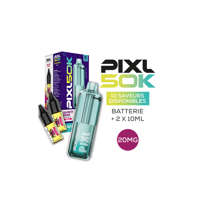 The PIXL 50K Kit features a built-in 850mAh battery and a large tank that can hold up to 20ml of e-liquid. The kit comes with two 10ml bottles of 20mg PIXL e-liquid in nicotine salt. The kit can deliver up to 50,000 puffs!