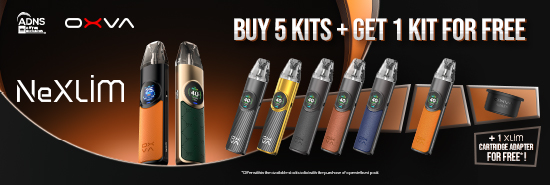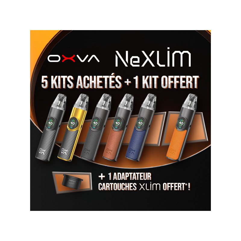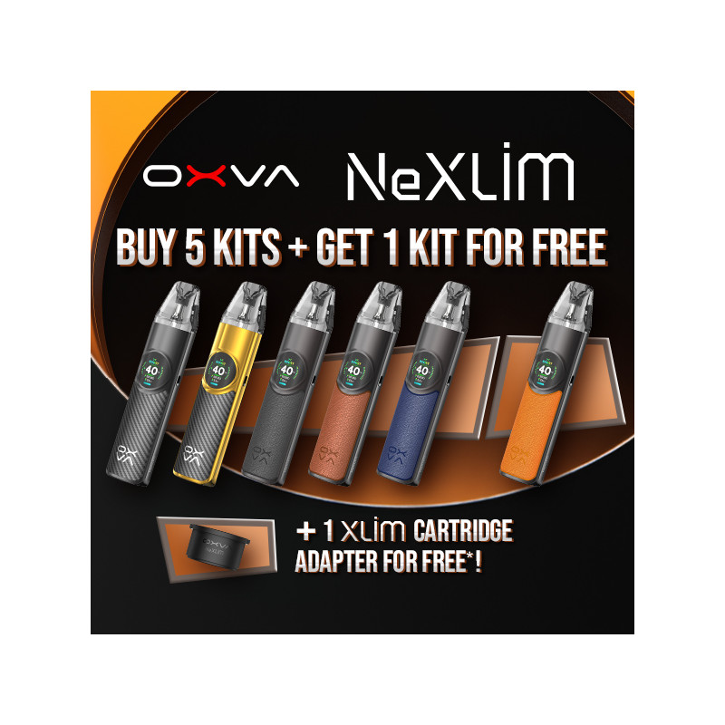 Buy 5 Oxva NeXLIM Kits (predefined colours) and get 1 NeXLIM Kit and an adapter for XLIM Top-Fill cartridges for free*.
