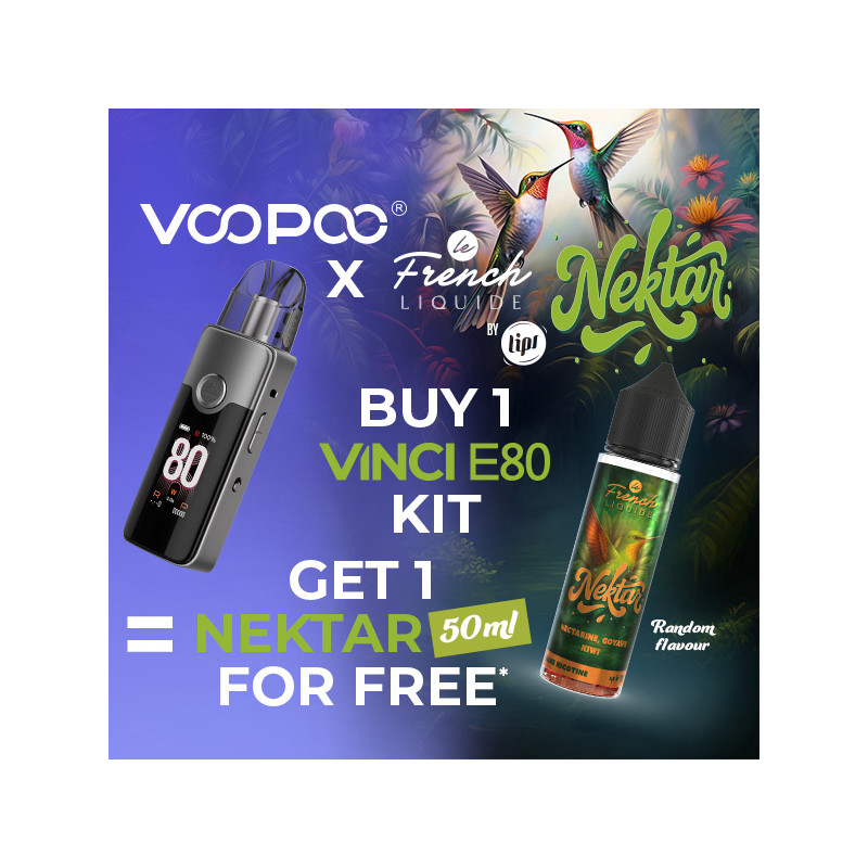 Buy a Vinci E80 Kit (Metal Gray color) and get a 50mL bottle of Nektar Le French Liquide by LIPS (random flavor) for free*.
