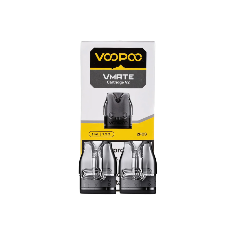 A pack of 2 cartridges with a capacity of 3ml and equipped with a coil Vmate V2 from Voopoo. Compatible with Vmate pods.