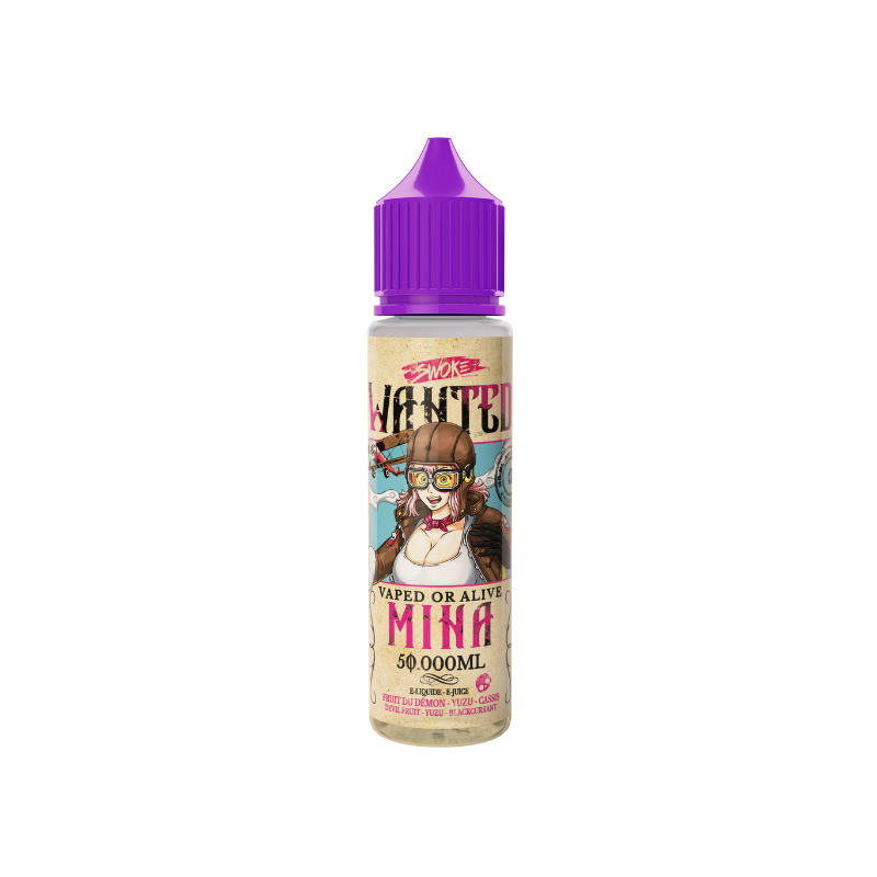 Beneath her charming, bewitching smile, Mina is a clever adventurer who won't give your taste buds a chance... Her combo of Demon Fruit, Yuzu and Blackcurrant is sought after in all five oceans, Vaped or Alive !