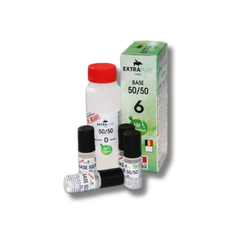 En 6mg : Une Base 100% végétal Extrapure 100mL PG/VG de votre choix +4 Boosters Extrapure 10mL PG/VG 50/50 en 20mg.