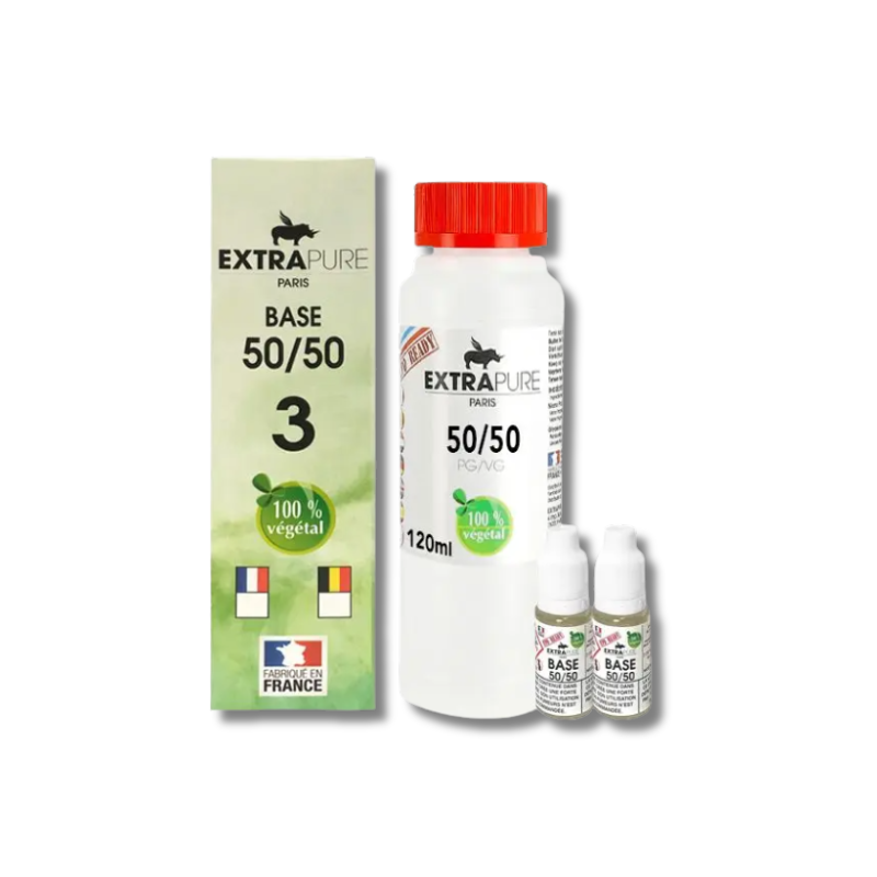 En 3mg : Une Base 100% végétal Extrapure 120mL PG/VG de votre choix + 2 Boosters Extrapure 10mL PG/VG 50/50 en 20mg.