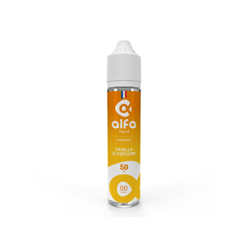 Discover or rediscover Vanilla & Popcorn by Alfaliquid. The delicious and punchy combination of light and fragrant egg custard and sweet caramelized Popcorn.