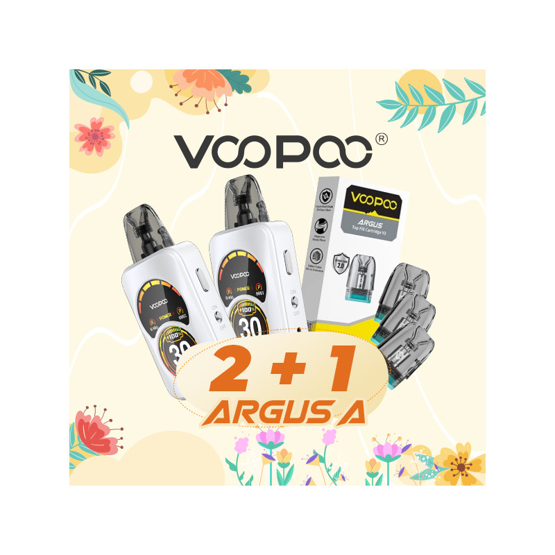 Buy 2 Voopoo Argus A Kits (Pearl White colour) and get a Pack of 3 Argus Top-Fill V2 3mL cartridges (0.4ohm) for free.