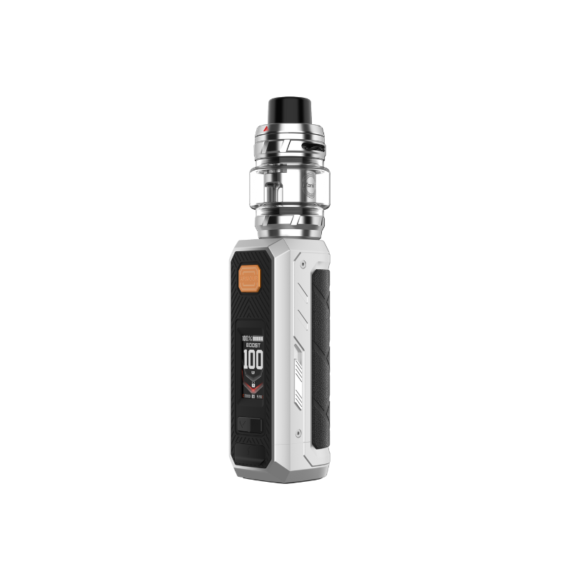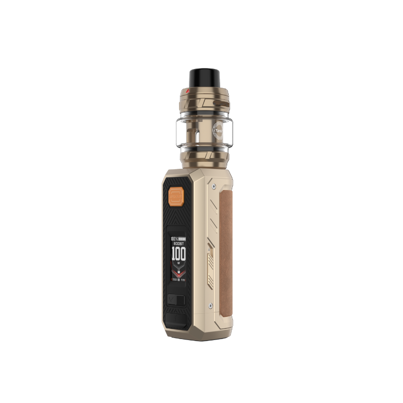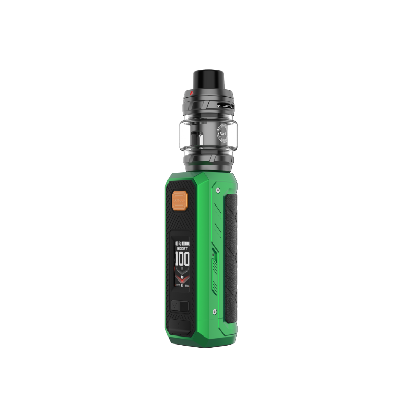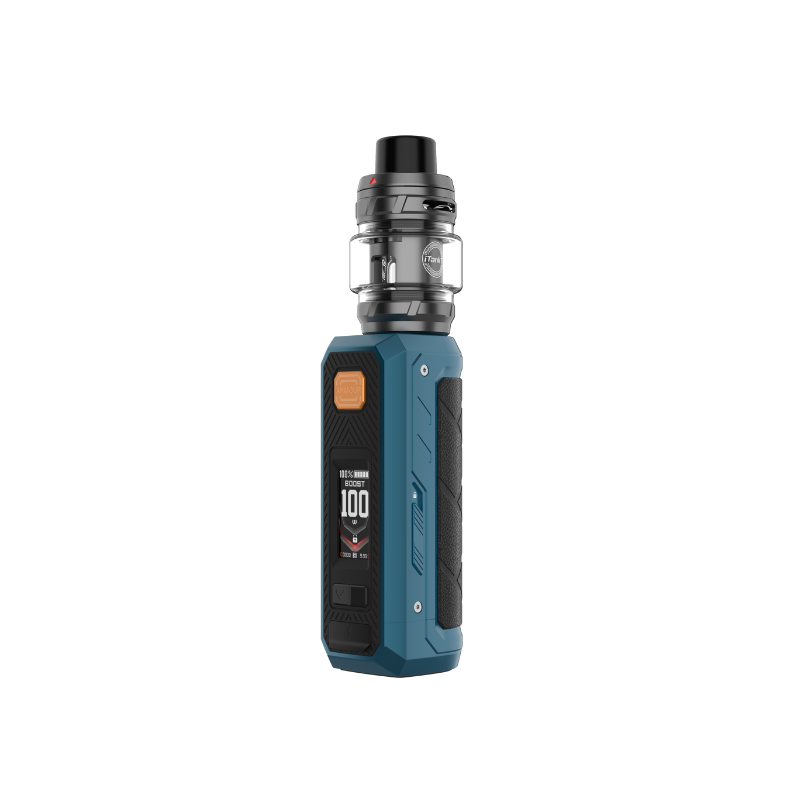 Following the success of the Armour Max and Armour S kits, Vaporesso is expanding the Armour Series range with the Armour Ultra Kit, featuring an unprecedented built-in 5500mAh battery that allows the kit to reach up to 100W of power ! It is equipped with the new 6mL iTank T atomizer in a new Dual Mesh version, guaranteeing a doubled flavor experience. It is compatible with GTi coils, including Dual Mesh coils.