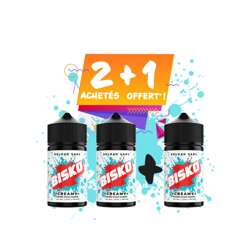Buy 2 liquids 50mL Vanilla Cream Cookie Bisko (a fragrant Vanilla Cream combined with a chocolate Cookie) and get the 3rd one for free* !