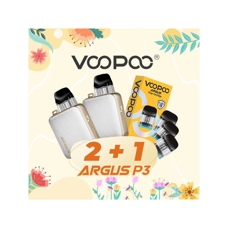 Buy 2 Voopoo Argus P3 Kits (Silver Leather colour) and get a Pack of 3 Argus Snap 2mL cartridges (0.4ohm) for free.