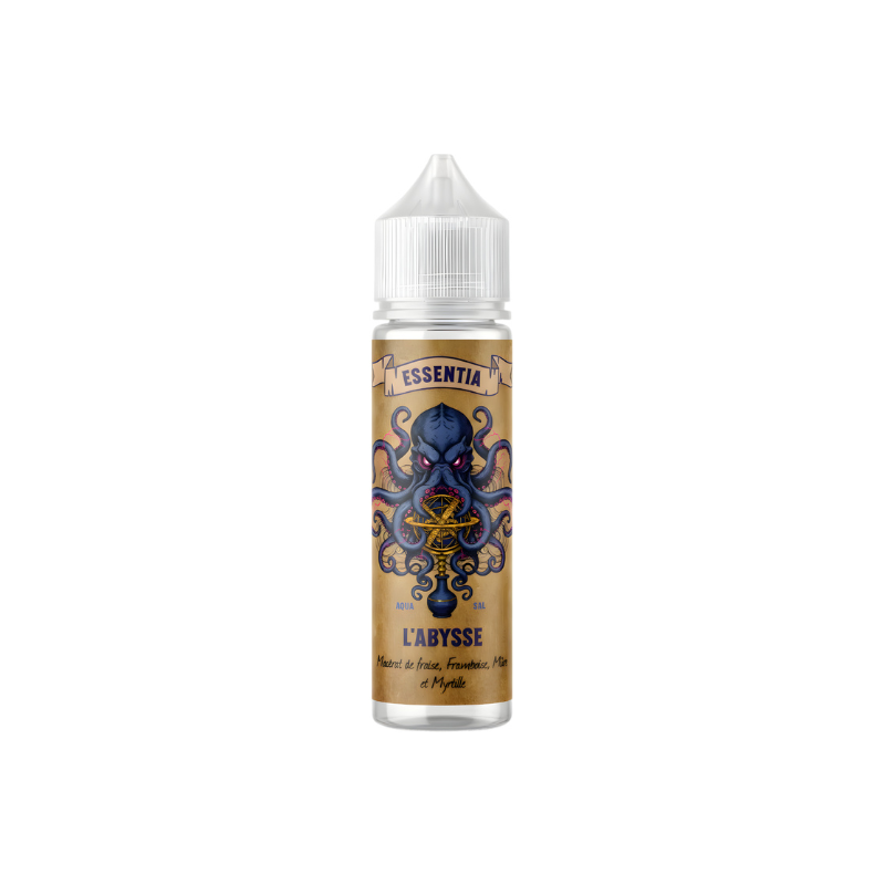 L’Abysse, an elixir born from forgotten depths, where Strawberry, Raspberry, Blueberry, and Blackberry intertwine in a dark, spellbinding wave, guarded by a mythical power.