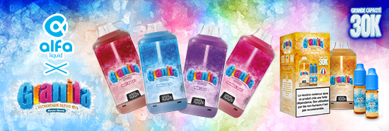 The iconic Alfaliquid Granita range of liquids is now available in a refillable puff format!
