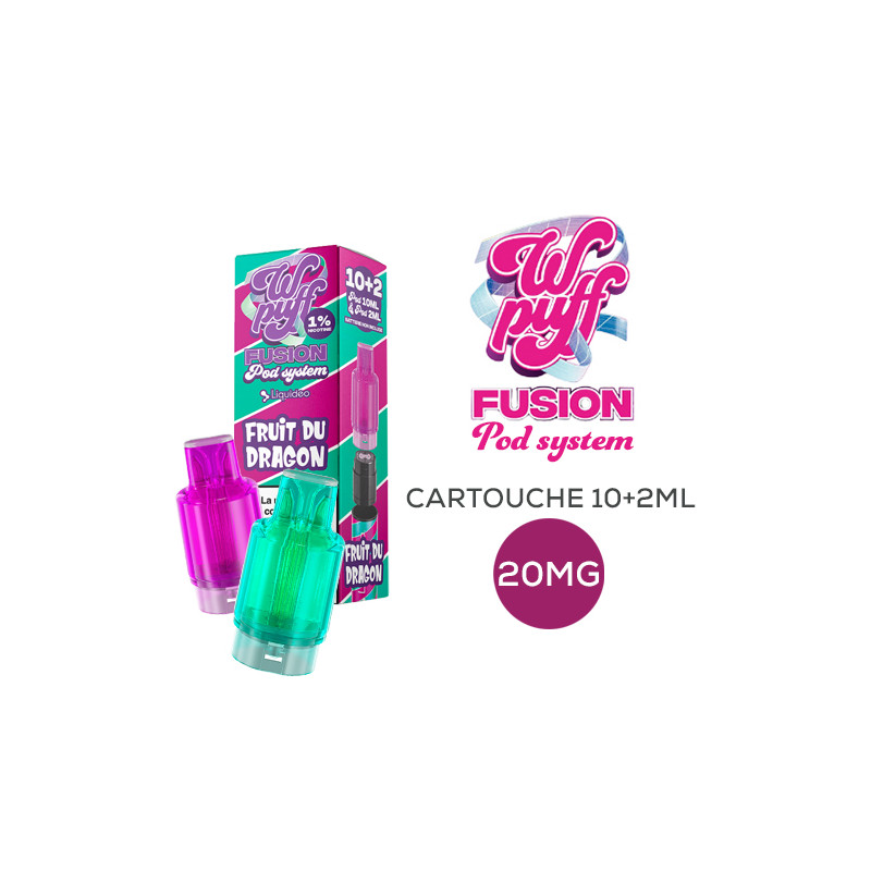 WPuff Fusion Pod System cartridges contain 12ml, including 2ml pre-filled Pod with 2% nicotine salt. These cartridges are compatible with the WPuff Fusion Pod System Kit (not included).