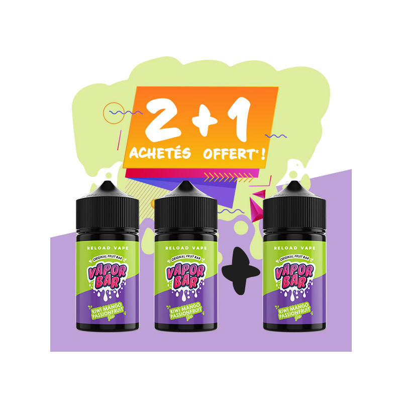 Buy 2 liquids 50mL Kiwi Mango Passion Fruit Ice Vapor Bar (an ultra-punchy combo of Kiwi, Mango and Passion Fruit) and get the 3rd one for free* !