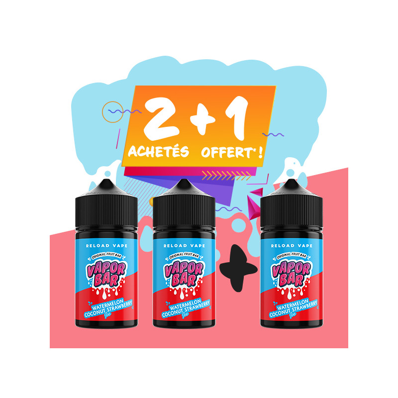 Buy 2 50mL Watermelon Coconut Strawberry Ice Vapor Bar liquids (a delicious Cookie and Caramel Cream flavour) and get the 3rd one for free* !