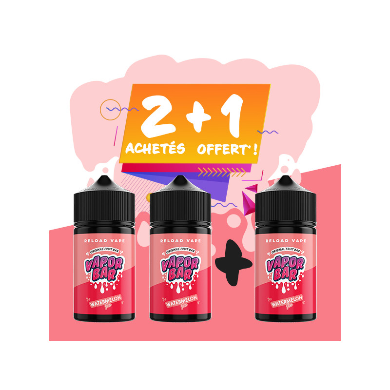 Buy 2 liquids 50mL Watermelon Ice Vapor Bar (an icy Watermelon flavor) and get the 3rd one for free* !