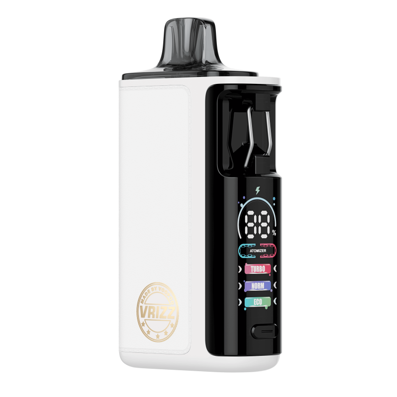 Available in 8 colours, the Vrizz 2 stands out for its ease of use! Operating solely in autodraw mode, it has a single button for 3 vape modes: Eco, Normal and Turbo. Its built-in 1350 mAh battery is recharged via a USB-C port (cable not included). The kit includes a 15mL pod with dual mesh 0.7 & 0.4 ohm coils that can be adapted to suit the chosen vape mode.
