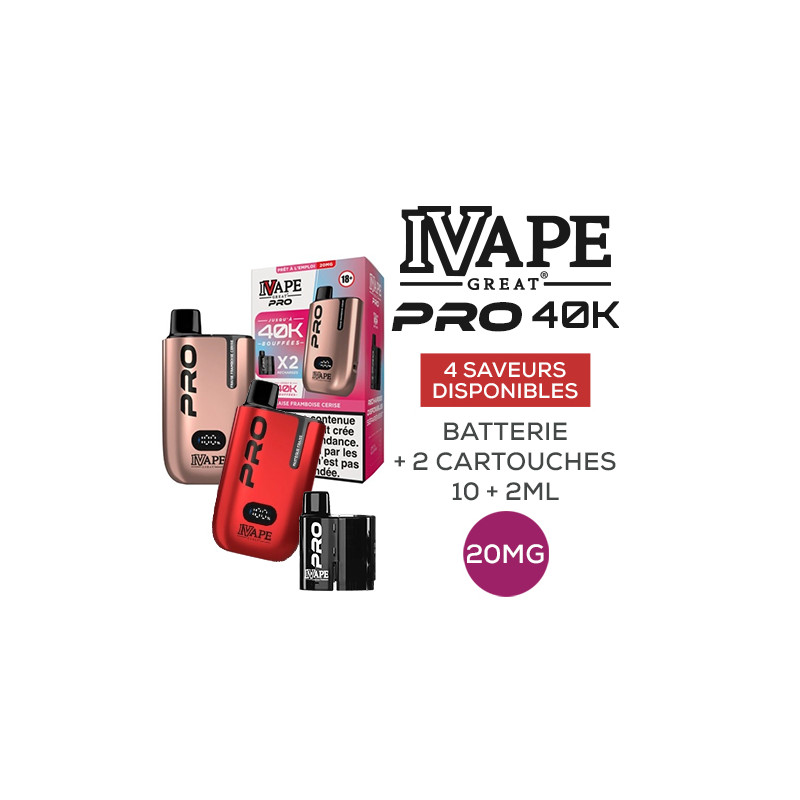 Acheter Kit Pro 40000 (2x10ml) 20mg IVapeGreat à prix grossiste.