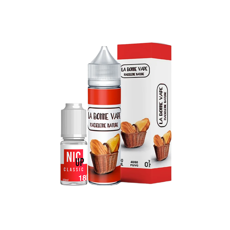 Acheter Madeleine Nature La Bonne Vape 50ml + Booster Nic Up 10ml 18mg à prix grossiste.