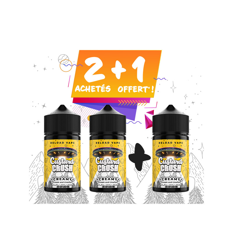 Pour l'achat de 2 liquides 50mL Cream and Licorice Custard Crush (un Custard de Réglisse inédit), le 3ème est offert* !