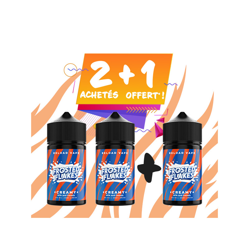 Pour l'achat de 2 liquides 50mL Milk and Cereal Frosted Flakes (le combo du matin, des Céréales sucrées avec du Lait), le 3ème est offert* !