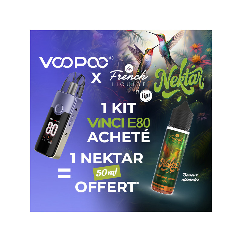 Pour l'achat d'un Kit Vinci E80 (couleur Purple Gold Gradient), recevez gratuitement* un liquide 50mL Nektar Le French Liquide by LIPS (saveur aléatoire).
