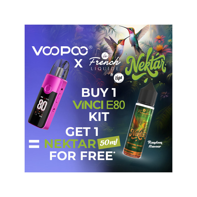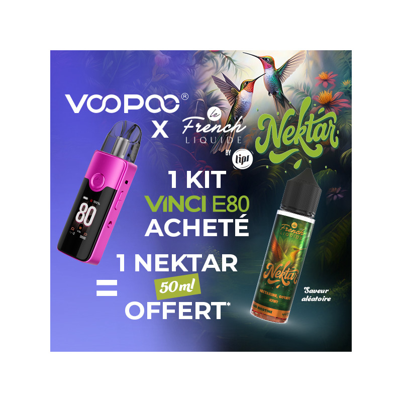 Pour l'achat d'un Kit Vinci E80 (couleur Rose Red), recevez gratuitement* un liquide 50mL Nektar Le French Liquide by LIPS (saveur aléatoire).