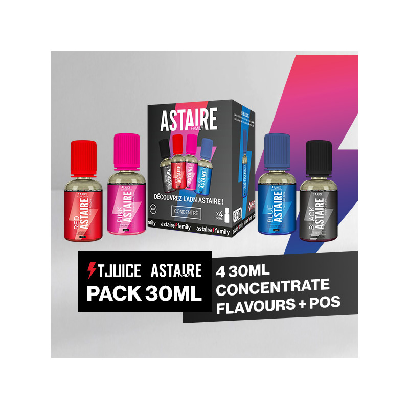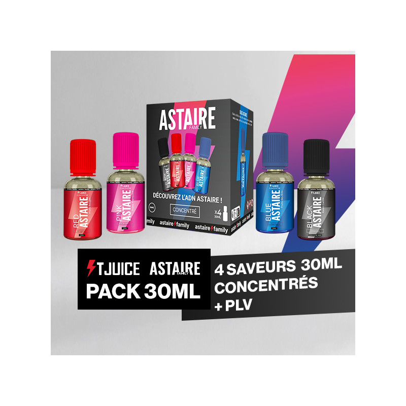 Pour implanter l'Astaire Family, profitez du Pack Découverte qui contient les 4 saveurs Concentré 30mL (Blue Astaire, Pink Astaire, Blue Astaire et le Red Astaire) à prix remisé*.