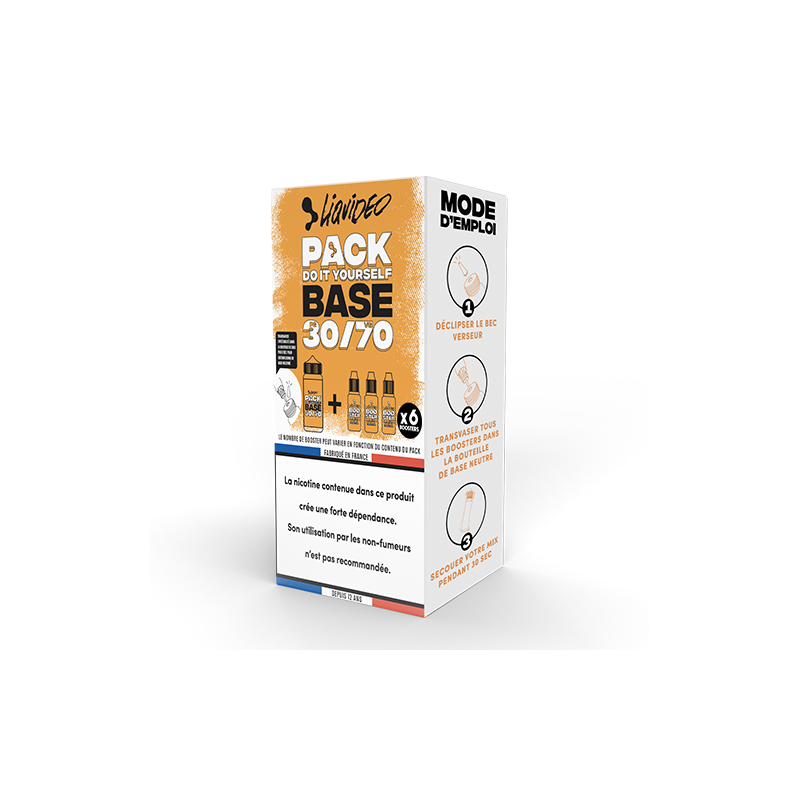 Inclus dans le pack 06mg 30/70 : x1 bouteille de base neutre 140mL 30/70 + x6 boosters en 20mg = 200mL en 03mg