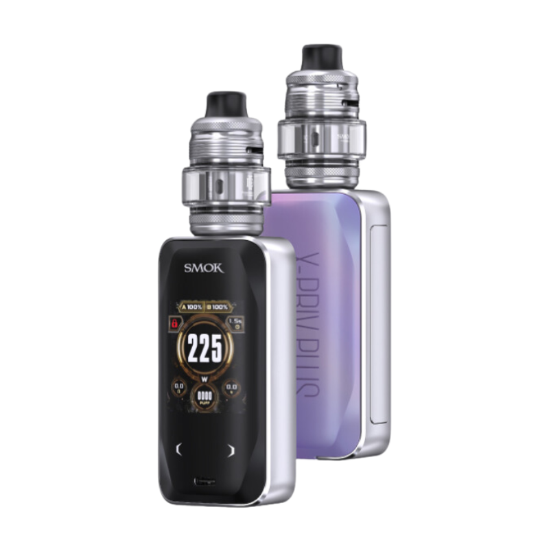 Découvrez le Kit X-Priv Plus qui fonctionne avec 2 Accus 18650 (non-fournis) et peut monter jusqu'à 225W de puissance ! Il est équipé du nouvel Atomiseur TF-D SubTank pouvant contenir jusqu'à 5mL de liquide et compatible avec les nouvelles résistances D-Coil de SMOK.
