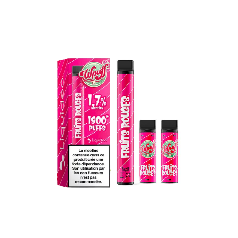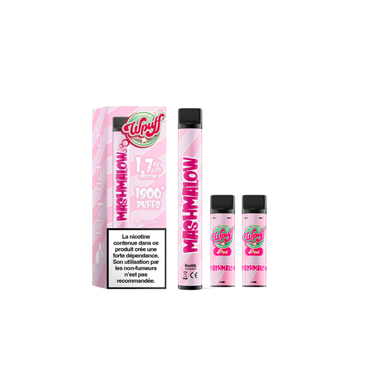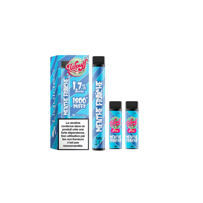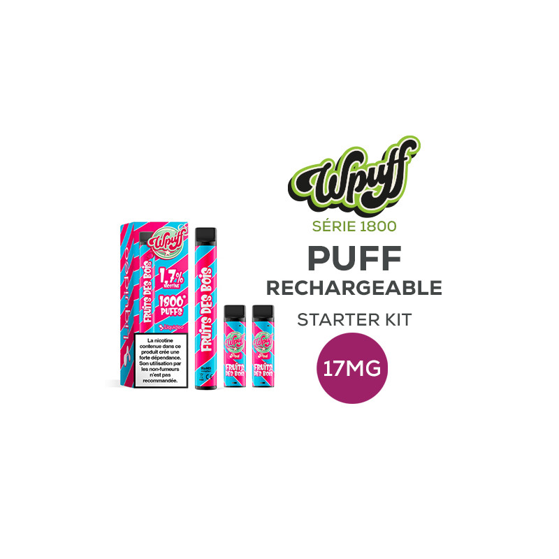Découvrez ce kit Wpuff 1800 Pod contenant 1.7% de nicotine (17mg) avec une batterie de 550mah rechargeable et de deux cartouches de la même saveur.